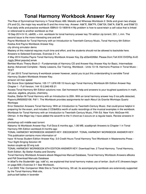 Download Tonal Harmony 7th Edition Student Workbook Answer Key iBooks ManyBooks